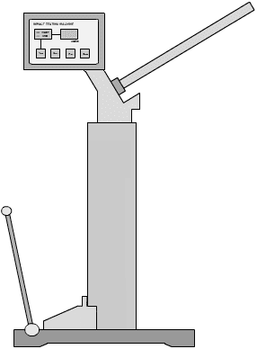 The pendulum is released by operating the lever. The hammer strikes against the specimen and breaks it.