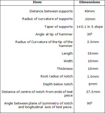 The Charpy test specimen as per Indian standard IS:1499-1977 is used to conduct the test.